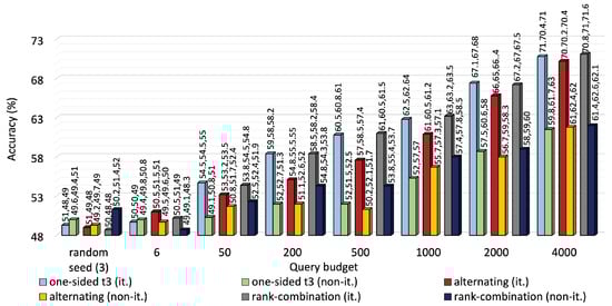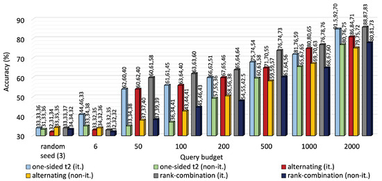 Similarly, iterative exploitation of new knowledge guaranteed almost 10% higher average accuracy than non-iterative modes of all querying techniques at maximum query level on the DEAP dataset.