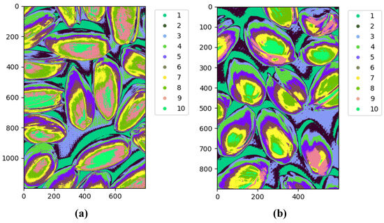 - Nakariyakul, S.; Casasent, D.P. Classification of internally damaged almond nuts using hyperspectral imagery. J. Food Eng. 2011, 103, 62–67. [Google Scholar] [CrossRef]