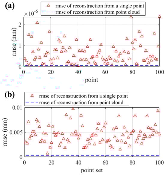 The comparisons between reconstruction from a single point and the point cloud. (a) Error in the reconstruction of the cylindrical SUT; (b) error in the reconstruction of the separate SUT.