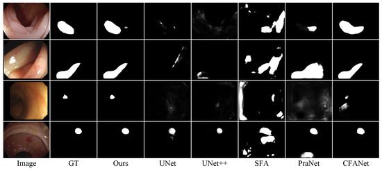 Visual comparison of polyp segmentation results.