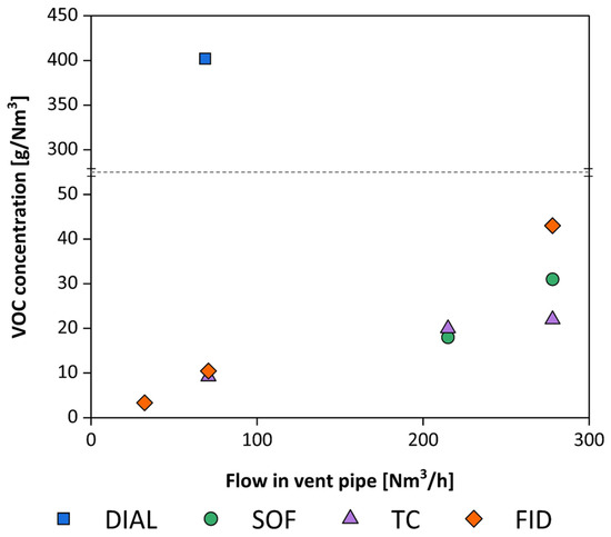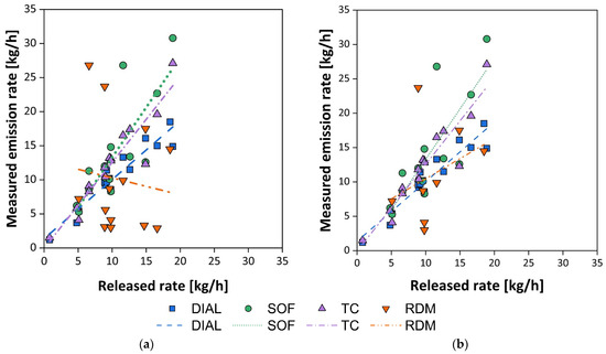 Alongside the methods described in the standard, so-called ‘micrometeorological’ methods are also available for indirectly estimating pollutant mass fluxes from complex sources [34,35,36]. However, these techniques are not mentioned in the cited reference.