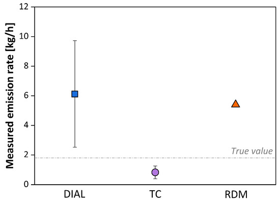 - Delre, A.; Mønster, J.; Samuelsson, J.; Fredenslund, A.M.; Scheutz, C. Emission quantification using the tracer gas dispersion method: The influence of instrument, tracer gas species and source simulation. Sci. Total Environ. 2018, 634, 59–66. [Google Scholar] [CrossRef]