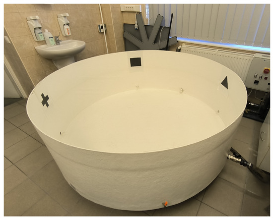During this study, the MWM tests were conducted at the Department of Pharmacology and Pharmacotherapy at the University of Debrecen, Hungary. The room with the experiment setup is shown in Figure 2. The circular pool at the center is 180 cm in diameter × 60 cm high, while the camera is situated above at 260 cm. The pool is filled with water (25 °C) to depths of 35 cm, and rendered opaque by added Acusol OP 301 opacifier (Fabricant Rohm&Haas, Landskrona, Sweden). A smaller circular platform is added to the pool for the test animals to escape from the water; this is invisible due to its height being 4 cm below the water surface. Regarding the size of the platform, the initial diameter is 10 cm, but we find that the rats often fall off because the older rats are significantly larger and heavier. As a result, we decide to increase the platform diameter to 14 cm to improve stability.