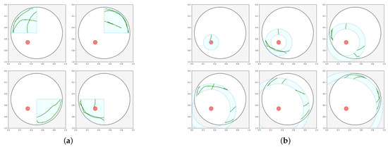The first approach involves dividing the pool into four quadrants (refer to Figure 7a) and analyzing swimming paths within each quadrant, which is a commonly used technique in numerous MWM studies. In contrast, our novel approach utilized a predefined parameter to establish the width of concentric circles (see Figure 7b). Going forward, both the quadrant-based section and the concentric circle-based section of the pool will be referred to as a zone.