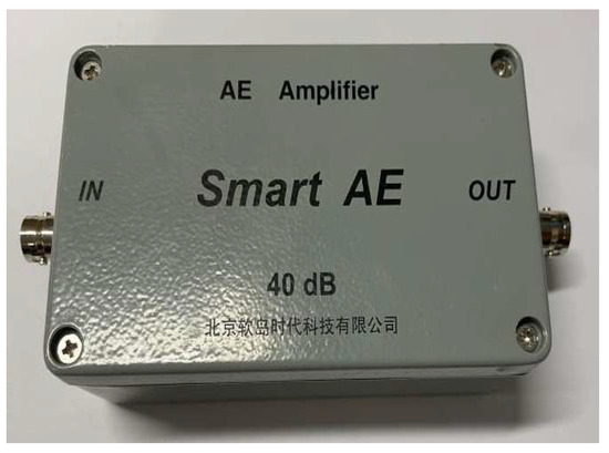 Figure 4, Figure 5 and Figure 6 are the physical diagrams of the components of the internal leakage signal acquisition system. Figure 4 shows a multi-channel high-frequency dynamic acoustic emission (AE) acquisition instrument with a sampling frequency of up to 3 MHz. This instrument enables full-waveform acquisition of real-time AE signals, allowing for the observation of panoramic contours and detailed waveforms of the collected signals. Figure 5 shows a signal amplifier that was primarily used to amplify signals collected by the acoustic emission sensor to prevent signal attenuation. A preamplifier with a gain of 40 dB is employed to enhance the internal leakage signals collected by the sensor. The acoustic emission sensor shown in Figure 6 is model RS-13A, with a sampling frequency range of 16 kHz to 60 kHz and a center frequency of 40 kHz. Table 2 provides the technical parameters of the acoustic emission sensor. Figure 7 displays the high-vacuum couplant, which fills the tiny gaps between the sensor’s contact surfaces. This couplant acts as a transitional medium, reducing signal attenuation losses.