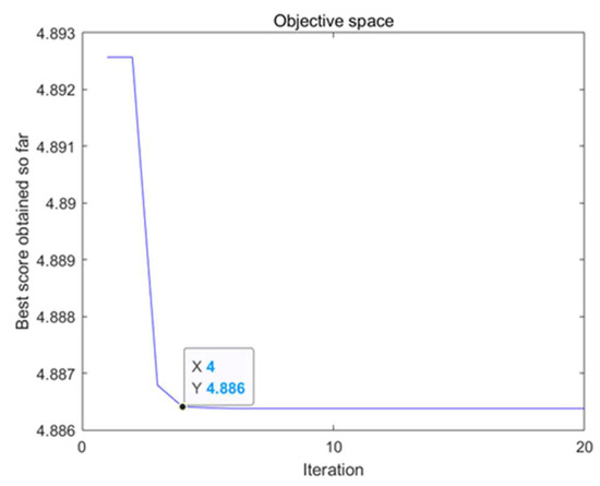 The optimization curve of the VMD decomposition parameters based on the SSA is shown in Figure 9. X is the iteration number, Y is the fitness.