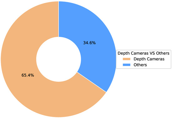 Camera sensors are crucial for acquiring visual data for movement analysis and physical therapy. The type of sensor chosen directly affects the quality of the captured data, the performance of the deep learning model, and the design of the evaluation protocol. In this review, depth cameras accounted for 65.4% (see Figure 4). As shown in Figure 5, standard depth camera sensors are shown below: