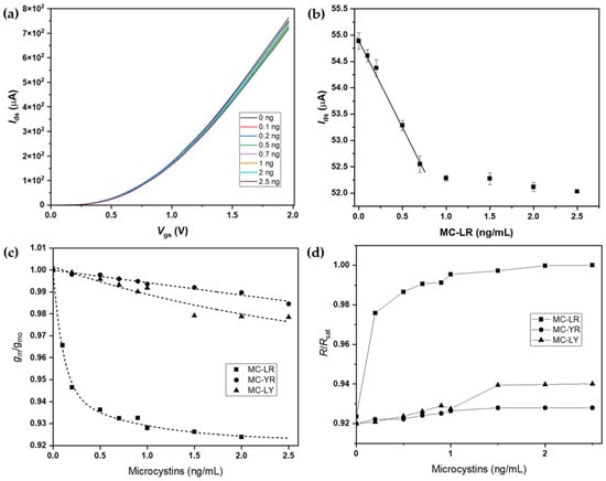 - Lee, M.; Kim, S.H.; Kim, D.; Kim, H.J. Rapid and Easy Detection of Microcystin-LR Using a Bioactivated Multi-Walled Carbon Nanotube-Based Field-Effect Transistor Sensor. Biosensors 2024, 14, 37. [Google Scholar] [CrossRef]