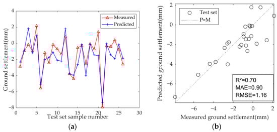 In recent years, with the rapid advancement of computer and artificial intelligence technologies, machine learning has emerged as a key method for predicting ground settlement during shield tunneling. Machine learning algorithms exhibit high fault tolerance, adaptability, and strong nonlinearity. They handle multiparameter coupling effectively and generate predictions quickly, making them ideal for the timely and accurate acquisition of ground settlement data in real-world projects []. Compared with traditional methods, machine learning offers key advantages: (1) There are no constraints on the input parameter’s dimension. Shield construction parameters can be incorporated into the input data, and in theory, all relevant parameters can be included in the model. The training process automatically adjusts the weights of these parameters []. (2) Input parameters are typically derived from actual engineering data, making predictions directly applicable to the project. (3) Machine learning models demonstrate strong fitting ability.