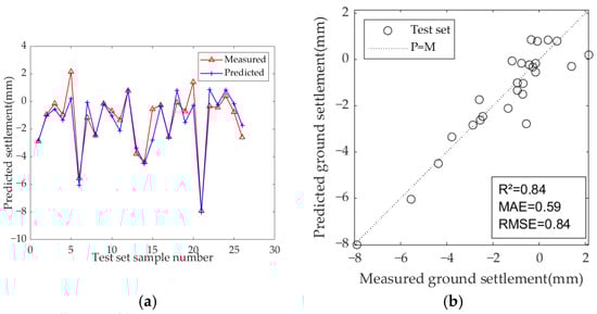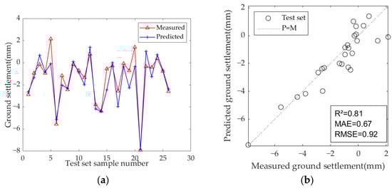 In previous studies, scholars typically used the maximum ground settlement across the entire shield tunnel as the output of prediction models. The maximum ground settlement refers to the peak value of the ground lateral settlement trough caused by tunnel excavation. Typically, the stable value of ground settlement directly above each ring, measured after the shield leaves, is chosen as the maximum ground settlement for that ring []. However, for shield tunnel projects with shorter lengths, the number of ground settlement monitoring points outside the tunnel axis is limited, and their distribution is relatively sparse. This makes it challenging to use them as output for prediction models, limiting their practical application in actual engineering projects. Based on the monitoring data from a part of the shield tunnel, this paper uses the maximum settlement value from all ground settlement monitoring points in this part as the output. By including the ground settlement data from all cross-sectional monitoring points, this study aims to maximize the use of limited data for training and assess the predictive capability of machine learning methods under small-sample conditions. The output parameter is shown in Table 5.