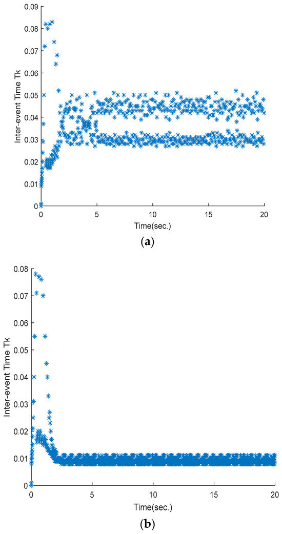 Evolution of inter-event time: (a) proposed method; (b) ETSMC scheme.