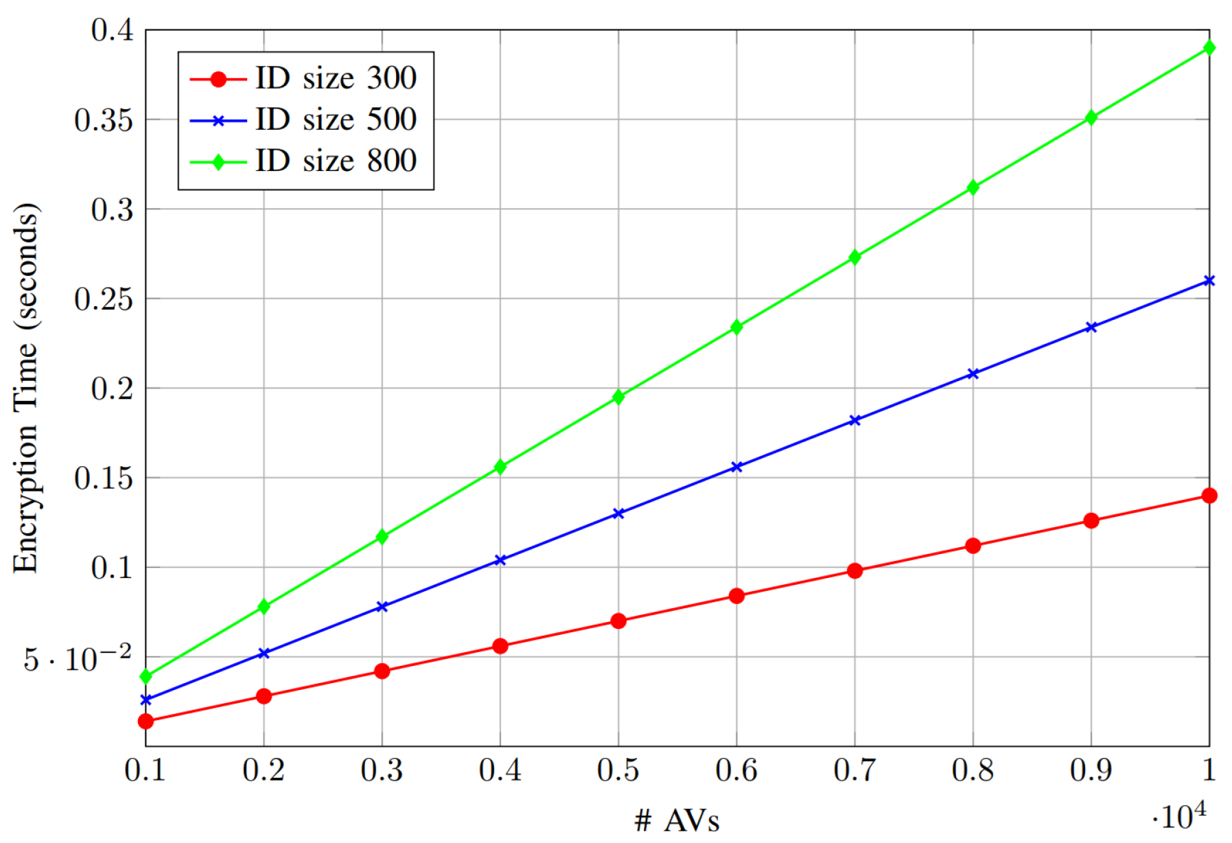 Encryption time vs. number of AVs.