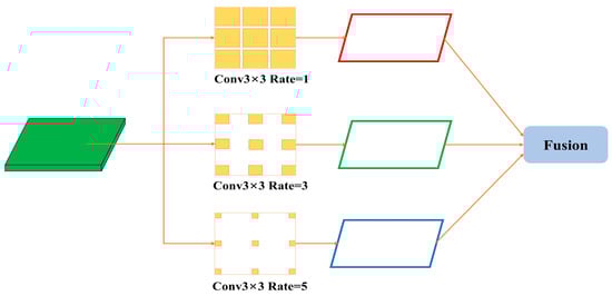 CAM inherits structural similarities from SPPF but is more purposefully designed to enhance weed detection performance. As depicted in Figure 3, CAM processes features via dilated convolutions with varied dilation rates (e.g., 1, 3, 5), enabling the network to glean richer spatial details across multiple scales. Through subsequent fusion operations, CAM aggregates these receptive fields into a unified representation, thus injecting additional contextual cues. In this manner, CAM effectively addresses the detection of small or occluded weed targets, improving the model’s overall accuracy in challenging field environments.