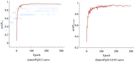 The experiment was conducted on a Linux system equipped with a 15 vCPU Intel(R) Xeon(R) Platinum 8358P CPU at 2.6 GHz, 80 GB of RAM, an Nvidia RTX A5000 graphics card, CUDA version 11.8, CUDNN version 8.0, Python 3.8, and the PyTorch 2.0. The learning rate was initially configured to 0.01, while the momentum was set to 0.937, weight decay coefficient at 0.0005, image input size at 640 × 640 pixels, batch size at 16, and the training was conducted over 300 epochs.
