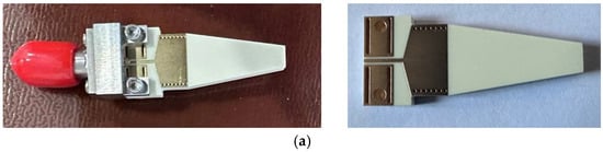 During the first fabrication and measurement of the rod end-fire antenna, an input GSG structure with small vias similar to the antennas in [,,] is utilized, as shown in Figure 6.