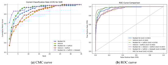 - DeCann, B.; Ross, A. Relating ROC and CMC Curves via the Biometric Menagerie. In Proceedings of the 2013 IEEE Sixth International Conference on Biometrics: Theory, Applications and Systems (BTAS), Arlington, VA, USA, 29 September–2 October 2013; pp. 1–8. [Google Scholar]