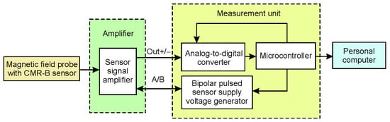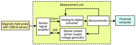 The developed microsecond high-amplitude magnetic field meter includes a magnetic field probe with a magnetic field sensor, a bipolar pulse voltage generator for sensor supply, the amplifier of the sensor’s signal, an analog-to-digital converter, a microcontroller, a USB and a fiber optic interface for communication with the personal computer. A more detailed explanation of each separate unit will be provided in the following sections.
