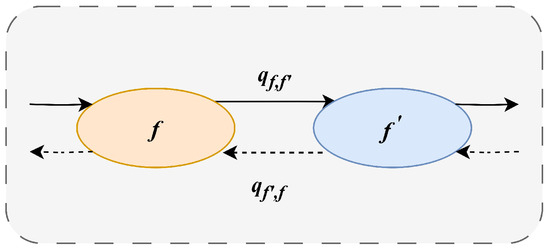 Initially, the transition rate between two solutions f and is set to zero until they simultaneously satisfy the following two conditions: (a): . (b): , where i represents the shard responsible for the transition . In other words, transitions between states do not occur until specific conditions are met, after which state transitions are allowed. This controlled transition ensures local changes in the system rather than large-scale adjustments, which will help the system to remain stable and gradually converge to the optimal solution in the dynamically changing environment of large-scale IoT nodes. The state transitions are shown in Figure 3. The state transition probabilities for the required Markov chain are designed as follows: