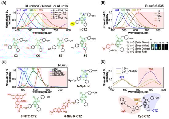 3.2. Color-Tunable Coelenterazine Analogs