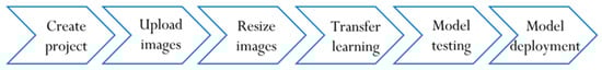 In this study, the person recognition model was retrained using the Edge Impulse platform, a web-based tool designed to simplify the processes of data collection, labeling, and model training for embedded devices. Edge Impulse also allows seamless deployment by exporting trained models as Arduino libraries, which include example codes for direct integration into edge devices. Using the Arduino IDE, the trained model was installed and uploaded onto the ESP32-CAM for real-time inference and testing. The entire process, from data collection to model deployment, is illustrated in Figure 7.