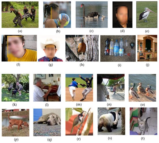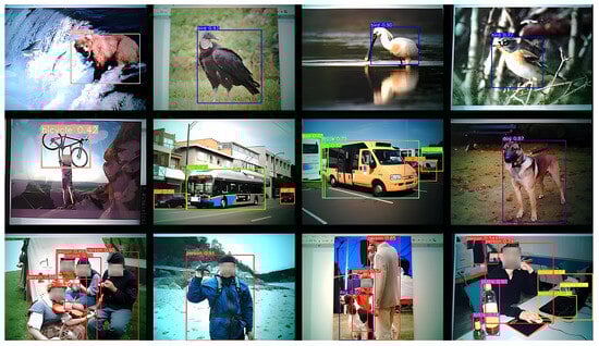 This study conducts experiments using an ESP32-CAM to capture images of a laptop screen displaying content from the ImageNet ILSVRC 2017 dataset. This dataset contains 20,121 images classified into two categories: “person” and “non-person”. A specific proportion of these images is mixed to create a video where the image changes every 0.5 s, resulting in a total runtime of 10 min and encompassing 1200 images. The default scenario features a composition of 30% “person” images and 70% “non-person” images. Figure 9 illustrates a test image set captured by the ESP32-CAM, showcasing the rotating images on the laptop screen. After being transmitted to the laptop via MQTT, these images undergo processing and recognition using the YOLOv8 model. Each image is numbered according to the loop sequence corresponding to each experimental option.