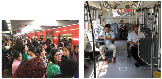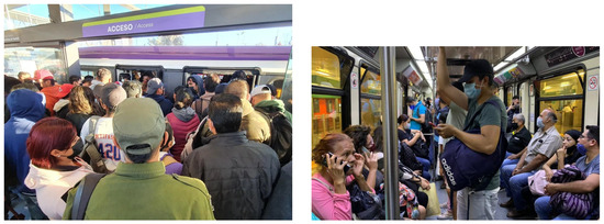 In Ref. [24], the model was trained and validated with the ShanghaiTech dataset. However, this work does not use this dataset because their images were not taken in any transport system. Therefore, two new datasets with authentic pictures of public transport systems in Mexican cities were created for this investigation. The first dataset is called MxPublicTransport and was used for training and validation. The second dataset is called GdlPublicTransport and was used for model testing. The MxPublicTransport dataset has images with different angles and lighting and represents both scenarios inside the vehicles and in the bus stops on the subway platforms, light rail stations, or BRT stations in Mexican cities. The GdlPublicTransport dataset has images captured from the mass and collective transportation systems in Guadalajara.