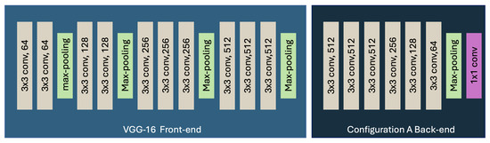 To obtain the number of people in the passenger counting system, the CSRNet model was used [23]. The CSRNet is based on the CNN VGG-16 to extract high-level features and generate high-quality density maps. The CSRNet model has four different configurations for the back-end, which have the same kernel size and the same number of filters but different dilation rates [24].