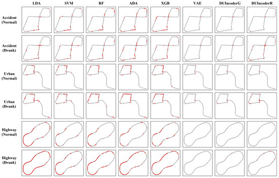 For a comprehensive evaluation of DUIncoder’s effectiveness in detecting drunk driving behavior across diverse driving scenarios and maneuvers, we conducted an assessment using all three routes from the DUI dataset. Due to the observed hindrance of KL divergence in minimizing reconstruction error during training [5,49], and considering the distinction between the DUI detection task and traditional generative tasks, in the experiment, we proposed and evaluated two versions of DUIncoder: