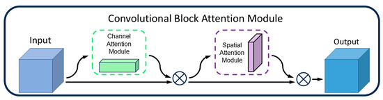 Although the P2 detection layer can capture more detailed features, it may also amplify background noise, leading the model to misclassify noise as defects. Particularly in low-contrast or complex-textured backgrounds, the features of tiny defects may still be insufficiently prominent, making it difficult for the model to accurately identify these defects. To address this, this paper incorporates the Convolutional Block Attention Module (CBAM) [31] after the P2 detection layer. By leveraging its dual mechanisms of a channel attention module (CAM) and a spatial attention module (SAM) (as shown in Figure 4), CBAM dynamically adjusts the weights of important channels and spatial regions in the feature map, thereby enhancing the model’s ability to detect tiny defects.
