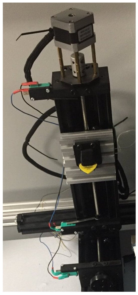 Linear actuators of the robot with limit switches at the edges of the working sections.