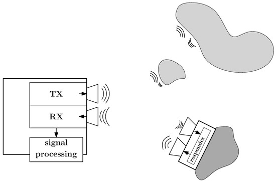 A high-level block diagram is provided to give an overview of the system architecture (Figure 2) and the signal flow at the responder (Figure 3). The mathematical description of the system has been previously detailed in a preceding publication [15], to which the reader is referred here to gain a better understanding of the background. Key definitions and principles relevant to this work will be briefly repeated for completeness. The variables used and their meanings are explained in Table 1.