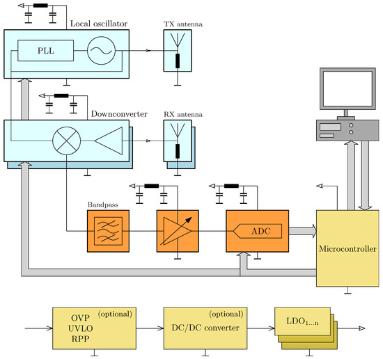 As preparation for the experimental setup, several preliminary considerations were made. After defining the technical requirements, a block diagram was derived that takes advantage of the heterodyne method. The operating frequency of the radar was chosen to be in the ISM band at with a bandwidth of .