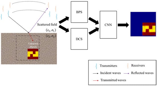 The architecture of our system is depicted in Figure 1. In this setup, we strategically place transmitters within the simulation environment to illuminate the target object while receivers capture the scattered field generated. We then utilize the gathered scattered field data to produce an initial image using the BPS and the DCS. These initial images are subsequently processed by a CNN for image reconstruction, transforming the estimated images into high-resolution electromagnetic images. This research makes several significant contributions: