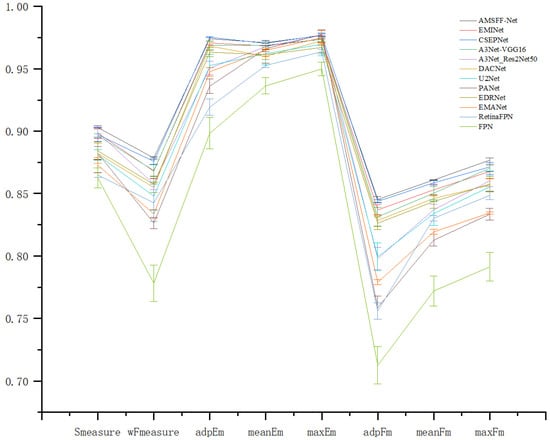 Error bar chart comparing AMSFF-Net with 11 other advanced methods.