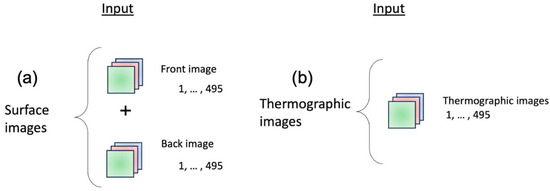The framework used two different types of images: thermal and visible images. Visible images are captured by sensors detecting visible light wavelengths between 400 nm and 700 nm. The detected information is digitalized in three channels (red, green, and blue). The thermal images are single-channel imaging using false colors to represent the views detected in the long wave infrared band ranging between 7.5 m and 14 m.