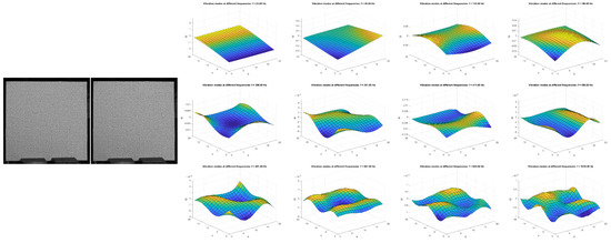 AI−powered analysis of free vibration modes in a thin plate. The images were captured at a high speed of 14,000 fps. Presented are two typical frames along with 12 identified vibration modes.
