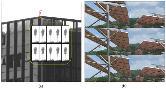 AI should be capable of distinguishing disturbances from the physical quantities that need to be measured. (a) Image distortion in long-range sensing caused by variations in air density and thermal haze. Ten representative frames of a target are zoomed-in for better visualization; (b) The motions of the solar panels under wind force, as captured by an outdoor camera, include the rigid-body motions of the camera itself.