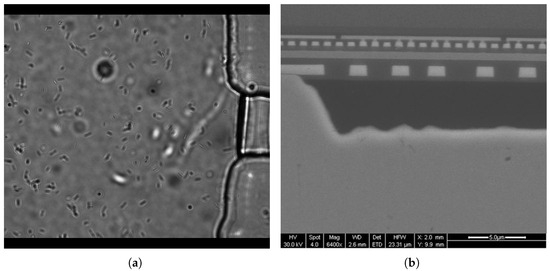 Visual sensing for motion and strain measurements using microscopy. (a) Bacteria motion tracking under an optical microscope. It is difficult to accurately track all the bacteria motions; (b) Microelectronics strain measurement under a scanning electron microscope. It is difficult to determine the full-field strain map.