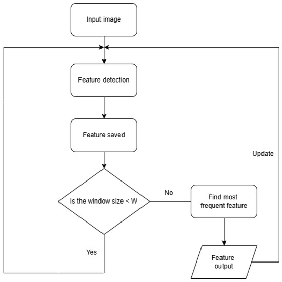 Feature output: The most frequent feature from the sliding window is then outputted as the final detected feature. This ensures that the algorithm’s decision is not overly influenced by any single erroneous frame. After outputting the final feature, the algorithm goes back to capturing the next input image and repeats the process. As new features are detected, they replace the oldest feature in the sliding window, ensuring the size of the window remains constant at W.