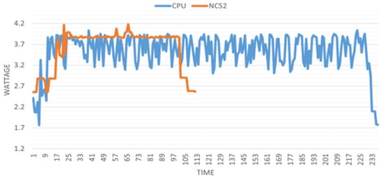 Moreover, the NCS2 is more power-efficient, consuming up to four times less power in tracking tasks and approximately two times less in image recognition, making it well-suited for real-time applications in resource-constrained edge computing environments. The efficiency and affordability of the NCS2 are particularly suited to edge computing environments, enabling real-time inference capabilities even on resource-constrained devices, thus providing a future for DNN-controlled embedded systems and IoT applications.