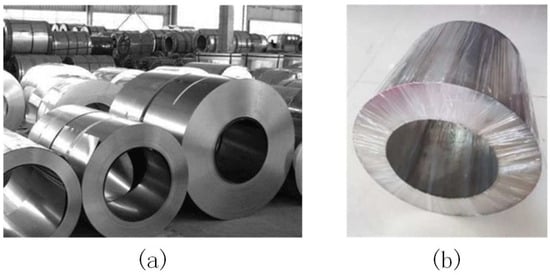 Steel coil image samples (a) Field sample (b) Experimental sample.