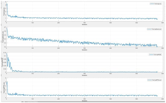 Prior to training the deep-learning network, it is essential to configure the network parameters. The specific parameter settings are as follows: the initial learning rate is set to 0.001, with a segmented learning rate decay strategy, reducing the rate every 1 epoch by a factor of 0.95. The momentum contribution from the previous step is set to 0.9, the maximum number of epochs is 10, and the mini-batch size is 1. The training is conducted in a GPU-enabled environment. During the training of the Mask R-CNN network, the loss change curves are optimized by calculating the discrepancies between predicted and labeled values, followed by backpropagation to refine the model. The loss change curve is illustrated in Figure 11.