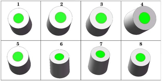 The ellipse detection program within the image processing module was evaluated for its ability to solve ellipse parameter features. Initially, modeling software was utilized to generate eight sets of mask images corresponding to the mounting areas determined by specific positions. All experimental images possessed a resolution of 800 × 800 pixels. The eight sets of original images and their respective ellipse fitting results are depicted in Figure 22, where the red line delineates the recognized ellipse boundary. It is evident from these visualizations that the ellipse fitting achieved a high degree of accuracy.