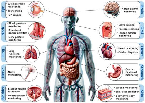 Figure 4 classifies the body’s organs according to their respective systems and provides an overview of their primary functions, showing the importance of such an application of sensors. Thereafter, various research in this area has been performed over the last decade.