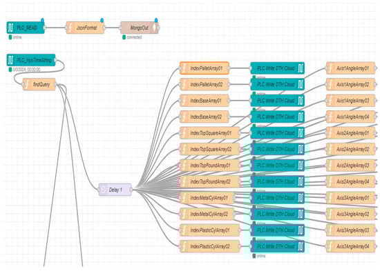 The DT environment uses Node-RED, a powerful and highly adaptable open-source, flow-based development tool for smart IoT-integrated automation systems. It runs on the Jetson Nano IoT device, enabling secure remote access and visualization of the robotic cell’s stored data in the Cloud. Moreover, Cloud provides global scalability, allowing access to data from any location worldwide.