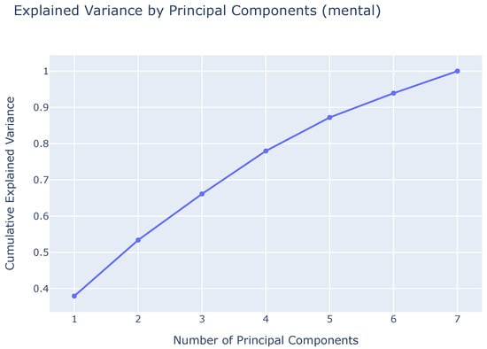 Graph of the cumulative explained variance of the principal components, based on the answers of the seven variables of the mental baseline questionnaire.