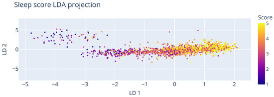 Projecting self-reported sleep scores to the two most discriminative directions using Linear Discriminant Analysis.