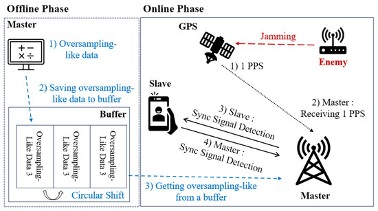 Figure 7 illustrates the conceptual diagram of the proposed wireless localization system model. First, the master node transmits periodic synchronization signals (sync signals), synchronized via GPS or other timing references, to maintain time synchronization across the entire system. These transmitted synchronization signals provide a reference for the slave nodes to align their timing and serve as a preamble to enable the precise detection of signal arrival times.
