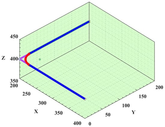 In recent years, the optimization of time, energy, impact, and other indicators has been shown to improve the operational efficiency and motion performance of robotic arms in the field of robot trajectory planning [29,30,31]. In the preprocessing stage of trajectory optimization analysis, expected trajectories as input parameters need to be predefined and generated. Therefore, this study will build the expected trajectory through the MATLAB platform, and the specific implementation process will be elaborated in the following sections. Considering the production background and optimization effect, a multi-segment point-to-point trajectory in Cartesian space is adopted to achieve multi-objective optimization of time and impact. In the following section, we will systematically analyze the mathematical model and its optimization process.
