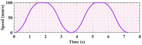 In addition, this study meticulously records the key parameters, particularly the joint angles, during the S-shaped speed curve movement. Two sets of joint angles consisting of several interpolation points are substituted into the forward kinematics formula, as shown in Equation (30). X and Y represent the coordinate values in the Cartesian coordinate system, respectively.
